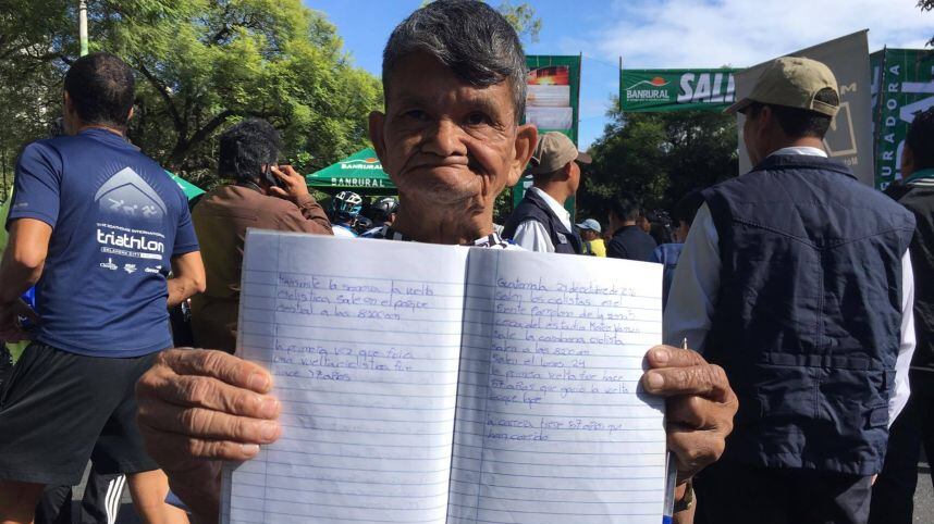 Juan Genaro llegó al punto de meta cuando apenas armaban el escenario y comenzaban a llegar los vehículos de prensa y de la organización. Mientras pasaban los minutos eran cada vez más personas en el lugar, pero no arribaban quienes él quería ver, los ciclistas.