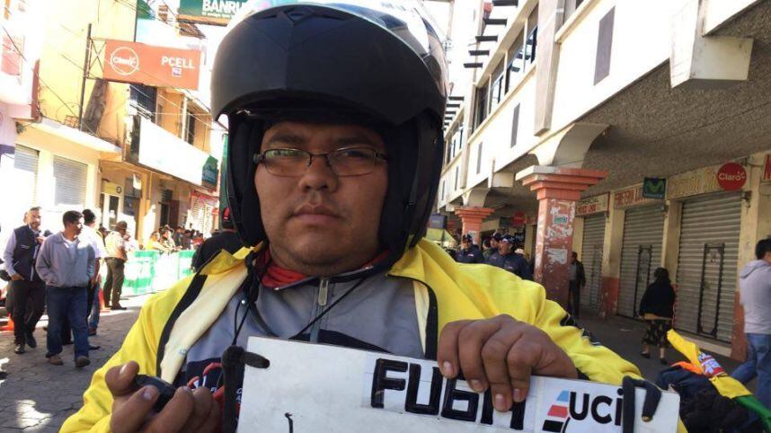Méndez es uno de los que se adelanta a la caravana para observar obstáculo o baches grandes que puedan afectar a los ciclistas. La información la traslada de inmediato por la frecuencia interna que escuchan los comisarios internacionales y el resto de los nacionales.