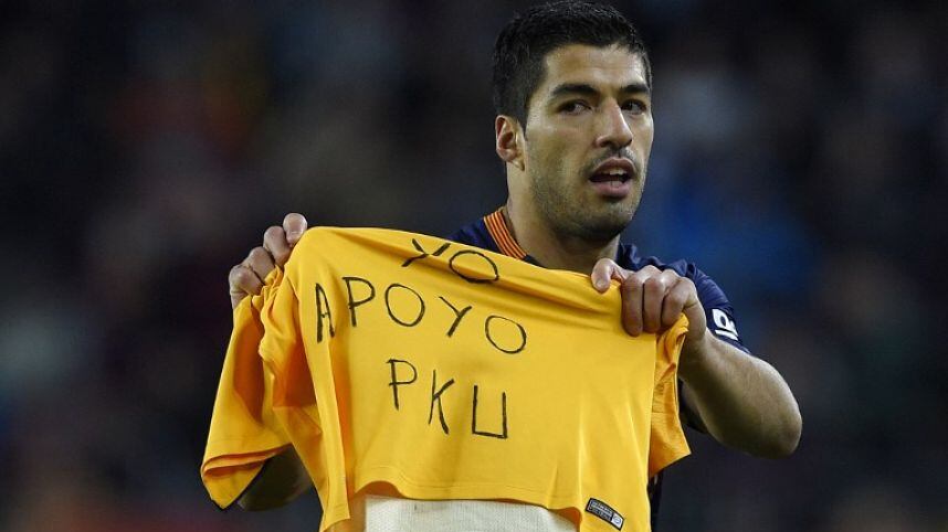 Ella le ofreció una camiseta blanca para que la usara debajo de la camiseta blaugrana, pero el uruguayo, para evitar la tarjeta amarilla, escribió el mensaje en una camiseta del Barça que tenía preparada en el banquillo.