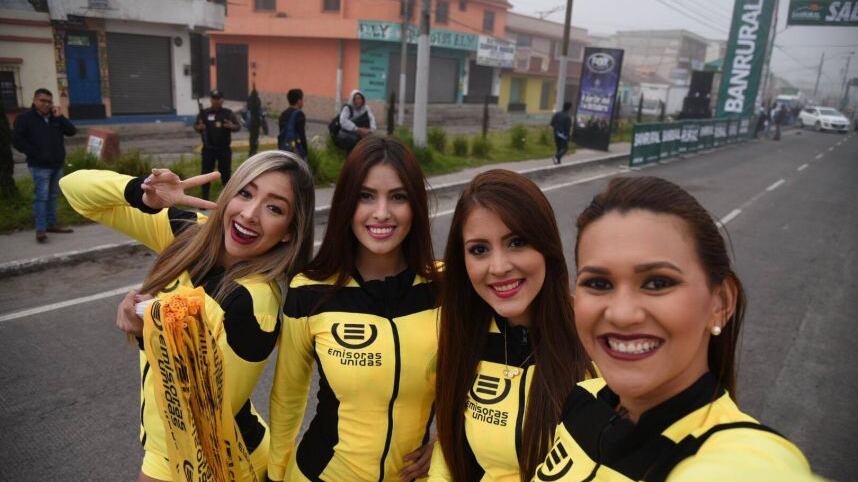 Desde la salida de la 56 Vuelta a Guatemala hay un grupo de chicas que ha acompañado a la caravana ciclística. Se trata de las modelos que visten uniformes de diferentes marcas comerciales y radios como Emisoras Unidas.