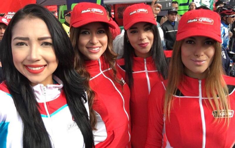 Ellas llevan sonrisas a todos los puntos de salida y meta donde decenas de personas llegan para ver de cerca a los pedalistas. Las modelos no descansan por las incesantes peticiones de tomarse una fotografía con ellas.