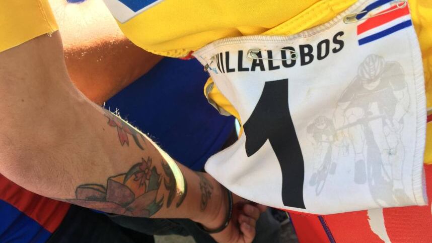 El costarricense Román Villalobos, que este año corre para el equipo mexicano Canel’s Specialized, es el nuevo líder de la Vuelta a Guatemala. Los pedalistas, por la exposición al sol, tiene un tono de piel más oscuro en sus brazos, respecto al resto de su cuerpo, pero el tico luce algo más en su brazo izquierdo.