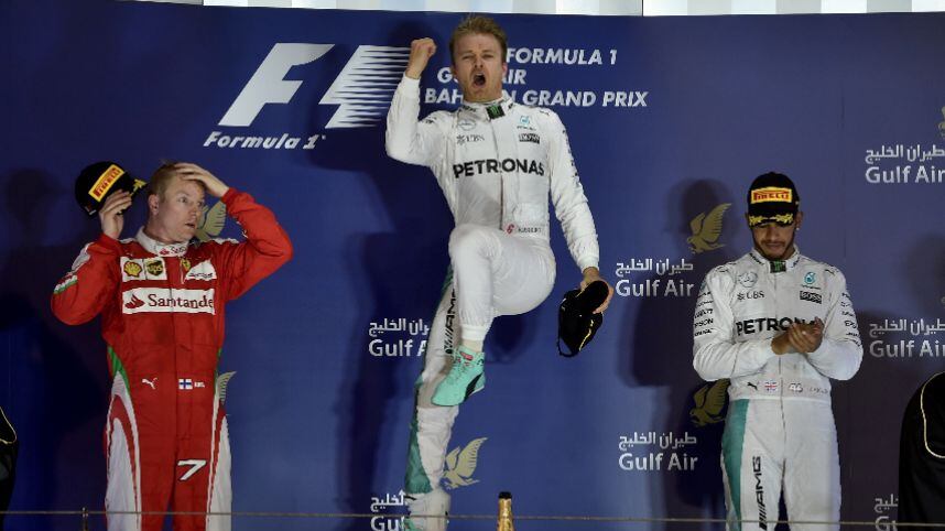 El alemán Nico Rosberg (Mercedes) dio un nuevo golpe de autoridad y confirmó su buen momento al haber ganado el Gran Premio de Bahréin, ante la mirada de decepción de su compañero y actual campeón de la Fórmula 1, Lewis Hamilton.