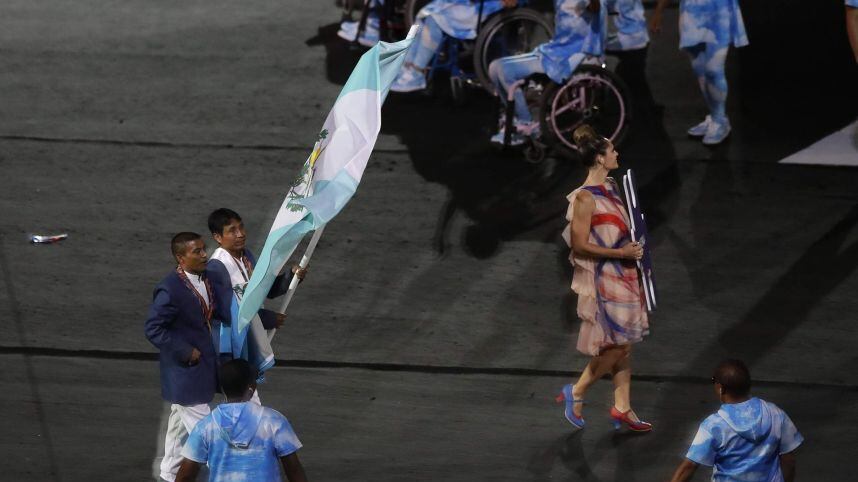 Y la delegación guatemalteca, representada por Óscar Raxón, quien ondeó el pabellón nacional en la pista del estadio Maracaná, acompañado de su guía, Santos Martínez.