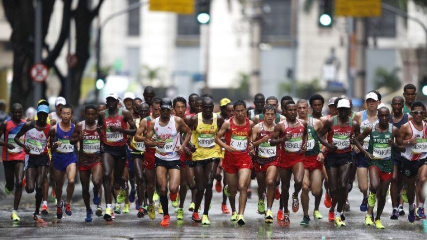 La exigencia de la prueba de 42 kilómetros fue muy grande para el grupo de más de 150 fondistas que recorrieron las calles de Rio bajo la lluvia y un ambiente húmedo.