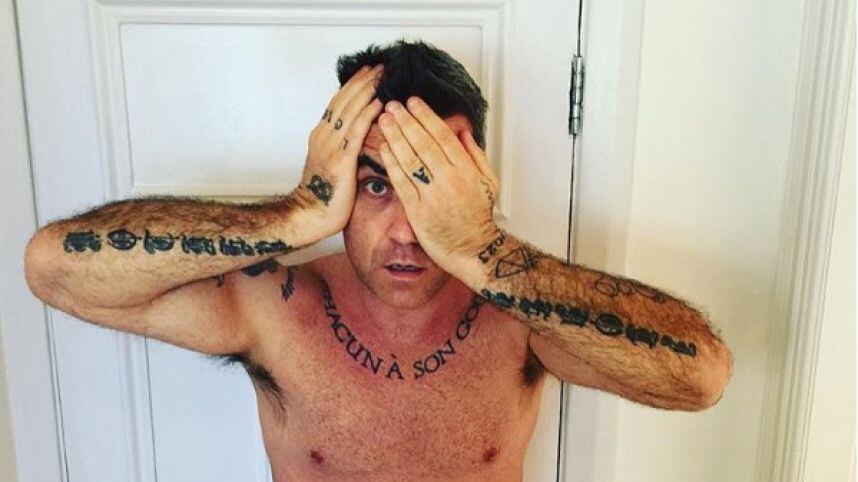 Desde el inicio de su carrera, Robbie Williams nunca tuvo problemas para mostrarse sin ropa, aunque siempre con la debida censura.