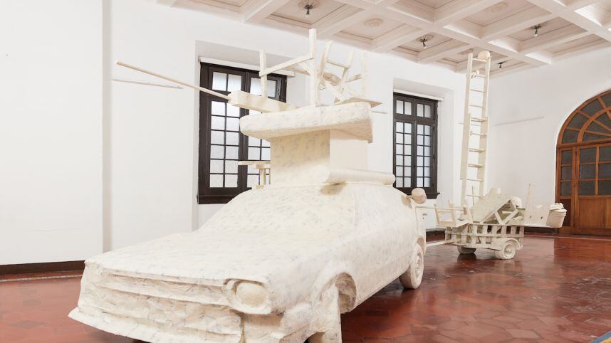 “Esto permite jugar con equilibrios y desequilibrios, construyendo parodias que establecen reflexiones en torno a la imagen de precariedad revestida, que finalmente desviste la imagen real de lo latinoamericano y de sus políticas espaciales”, añade.