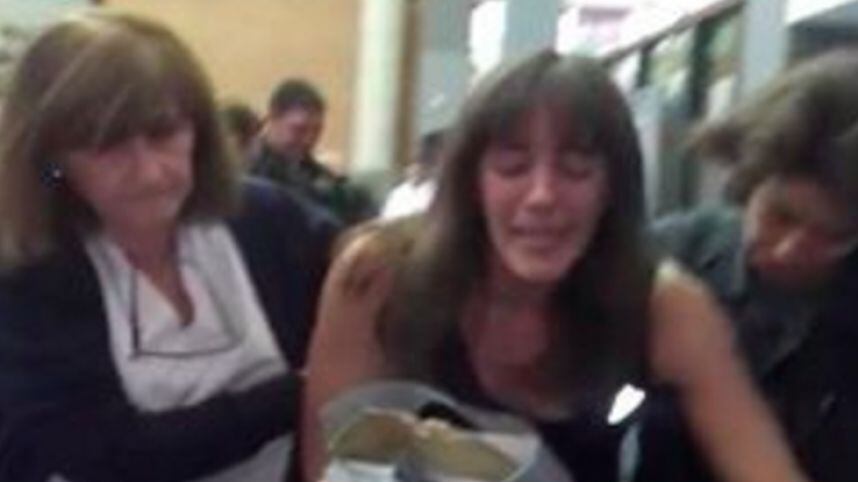 El video, grabado y subido a Internet el pasado 9 de marzo por su esposo, Abel Aguirre, capta el momento en el que la mujer es escoltada por personal de Edenor (Empresa Distribuidora y Comercializadora Norte Sociedad Anónima) y agentes de seguridad.