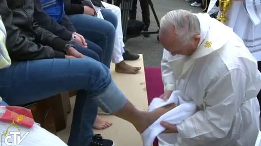 En una ceremonia realizada en un albergue para refugiados en las afueras de Roma, el papa Francisco llevó a cabo el tradicional lavatorio de pies del Jueves Santo 2016. No te pierdas el video.
