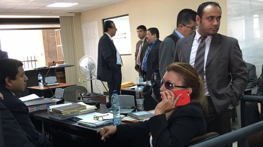 Durante un receso de la audiencia la exregistradora aprovechó para hablar por teléfono.