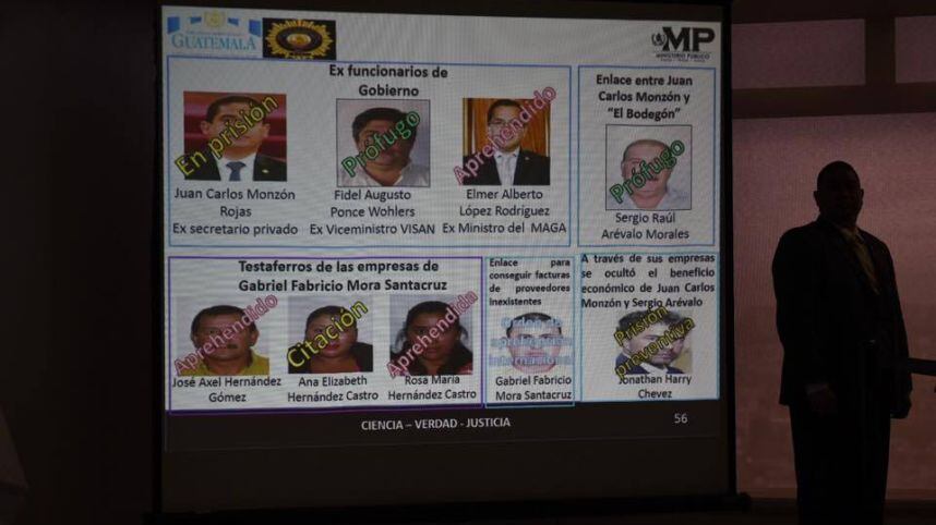 En la revelación del “caso El Bodegón” la Fiscalía explicó que entre los beneficiarios con el dinero del contrato, suscrito bajo el pretexto del estado de calamidad declarado en 16 departamentos en 2014, está el ex secretario privado de la entonces vicepresidenta Roxana Baldetti, Juan Carlos Monzón, y Jonathan Chévez, quien está proceso por el caso Cooptación del Estado.