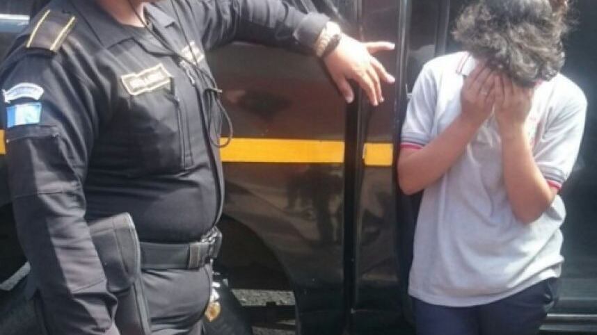 Vestida con una camisa como si fuera de uniforme escolar, y cubriendo su rostro con las manos, la joven de apellidos Vásquez Ordóñez fue conducida a un juzgado de menores en conflicto con la ley penal.