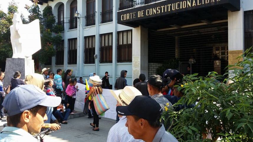 Esta mañana, los vecinos de San José El Golfo y San Pedro Ayampuc participan en un plantón frente a la Corte de Constitucionalidad para exigir a los magistrados resolver en forma definitiva un amparo provisional que suspendió los trabajos en la mina La Puya.