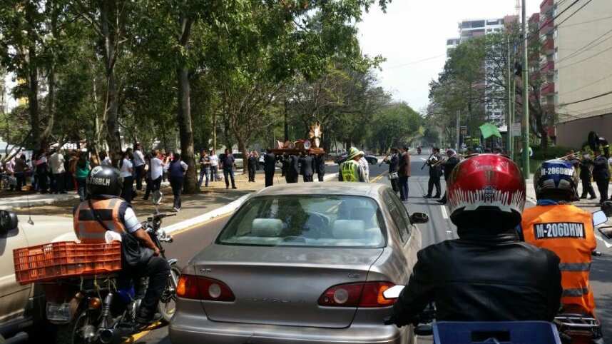 Hoy en la avenida Las Américas un Señor Sepultado repartió bendiciones a los automovilistas.