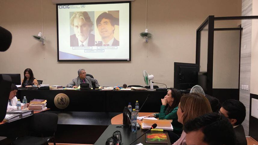 La fiscal de la CICIG mostró las fotografías de los españoles Juan José Juárez, gerente de TCQ y Ángel Pérez, de Transportes de Contenerdores de Barcelona (TCB) quienes habrían pagado el soborno.