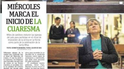 Miércoles de Ceniza 2016 – El miércoles 10 de febrero de 2016 se inicia la época de Cuaresma para la fe católica. – En la liturgia, el sacerdote impone una cruz de ceniza en la frente de los feligreses, como símbolo de penitencia. Acompañado de la sentencia: “Conviértete y cree en el evangelio”. – La ceniza es producto de la quema de los ramos del año anterior.