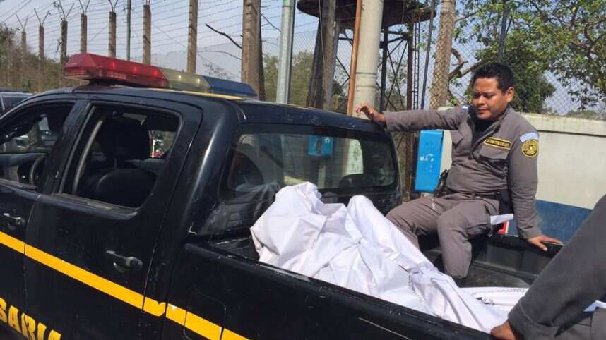 Los privados de libertad fueron identificados como Christian Daniel González Sánchez, Jonathan Alexander Chun y Eber Alexander Luna Ruano. Los cuerpos están envueltos en sábanas.