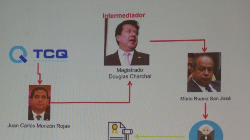 El caso específico contra el magistrado de la CSJ es que, según el MP, se apoyó en el operador Mario Ruano San José para lograr una resolución favorable para la empresa Terminal de Contenedores Quetzal (TCQ) en el juzgado de Escuintla, a petición de Juan Carlos Monzón.