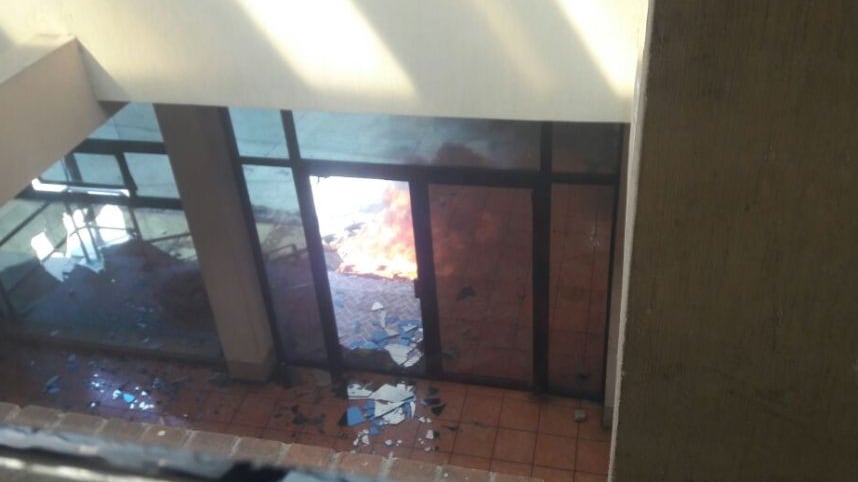 La página de Facebook Knal 4 Quiché también compartió fotografías en las que se evidencia la destrucción causada por los pobladores malacatecos en la entrada principal de la Municipalidad.