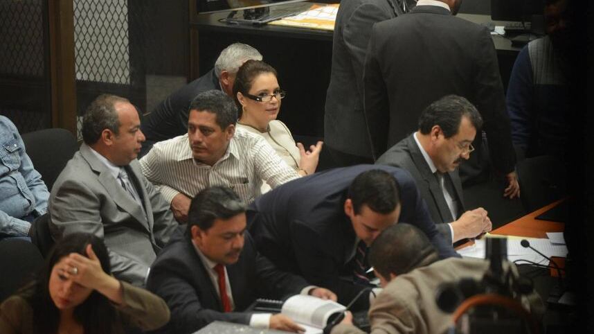 El exmandatario se acercó a Baldetti para conversar, sin que ella lo viera al rostro. Pérez le compartió un documento, pero se le ha visto a la exfuncionaria muy pendiente de las cámaras.