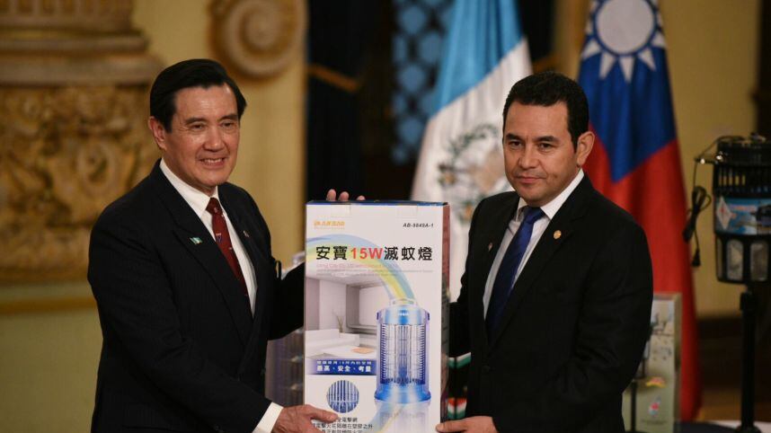 El mandatario taiwanés, Ma Ying-jeou, también presentó los aparatos contra zancudos que su gobierno donó a Guatemala.