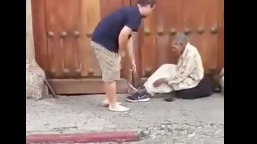 El hombre, sin titubear, se “puso en los zapatos de un indigente”, le obsequió su calzado y continuó caminando descalzo.