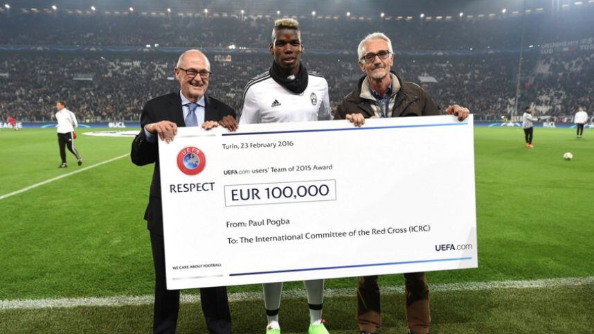 Previo al partido entre la Juventus y el Bayern Múnich, el mediocampista francés del conjunto italiano, Paul Pogba, realizó un donativo de 100 mil euros al Comité Internacional de la Cruz Roja.