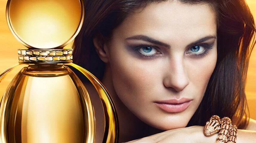 La modelo Isabeli Fontana representa el brillo soleado intenso de la mujer Goldea. Evoca los misterios del lugar de nacimiento del perfume, la cuna de la feminidad sagrada e irradia voluptuosidad y carisma.