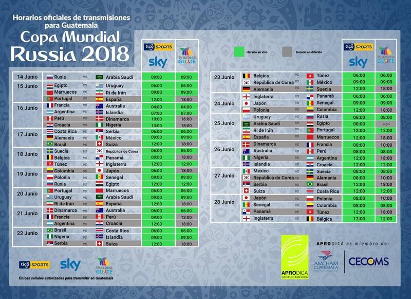 “Para los que no tengan cable podrán ver los juegos por medio de Canal 31 UHF, que es Azteca Guate, quien transmitirá 44 juegos en vivo y 20 en diferido. Tigo Sports y Sky, transmitirán los 64 partidos en vivo”, agregó.