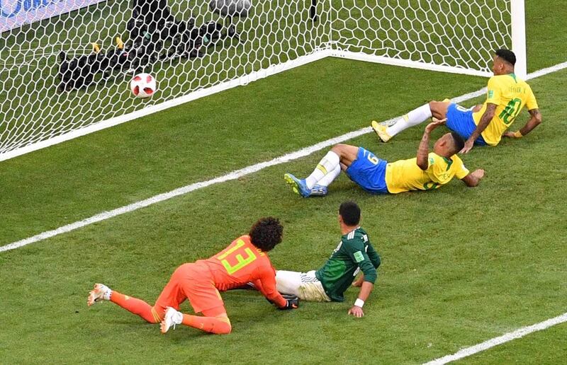 La apuesta de Juan Carlos Osorio fue adelantar sus lineas para buscar presionar en el medio campo, pero no contaba que sus defensores dejarían espacios y esto fue aprovechado por la "canarinha" donde Neymar tomó el balón y se proyectó por la banda sin que nadie lo pudiera marcar y este sacó un remate que lo logró desviar el portero Ochoa, pero al cierre llegó Firmino, quien saltó de la banca para sentenciar el triunfo de los brasileños y sellar el boleto de vuelta a casa para los mexicanos.