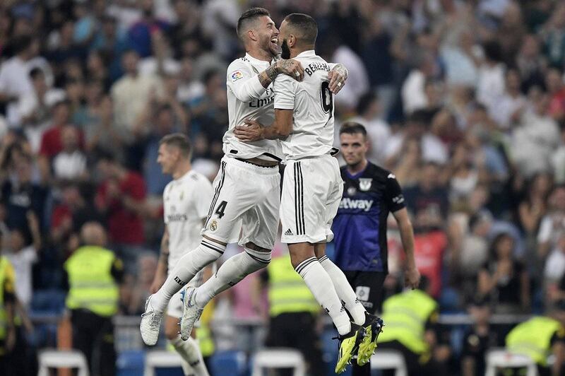 El Real Madrid se destacó como líder de la Liga española gracias a su victoria 4-1 en el derbi ante el Leganés en el Santiago Bernabéu, donde brilló Karim Benzema con un doblete, este sábado en la 3ª jornada, en la que el Atlético de Madrid perdió y queda a 5 puntos de la cabeza.