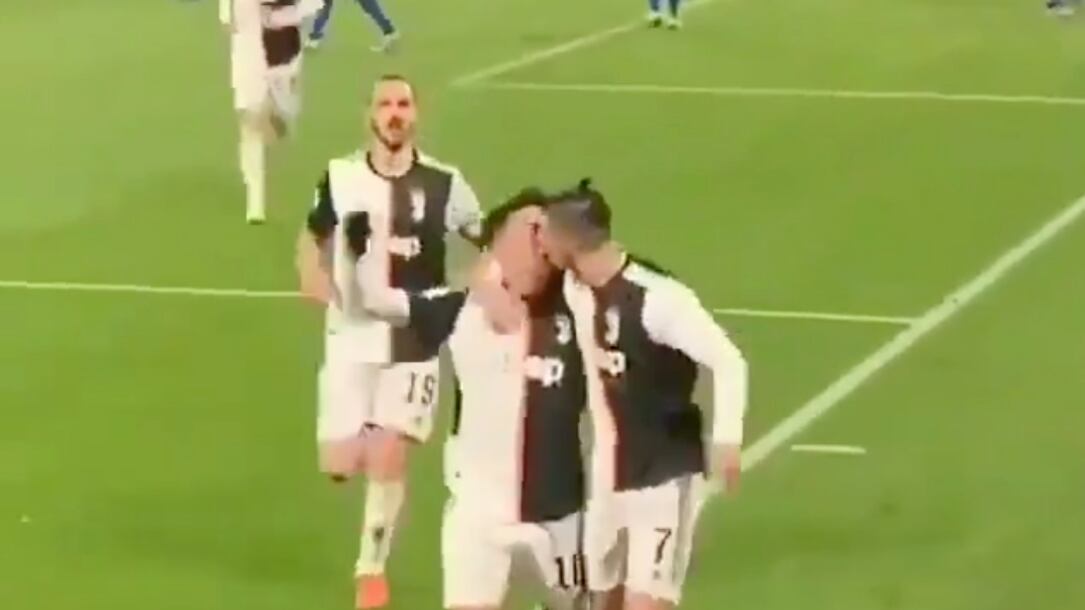 A través de redes sociales se hizo viral un video de Cristiano Ronaldo dándole un beso a Paulo Dybala.