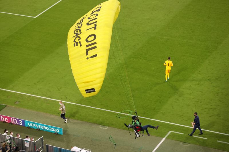 La UEFA se pronunció por el incidente que provocó un activista de la asociación ecologista Greenpeace que se estrelló contra la afición, en el estadio de Múnich, dejando varios heridos previo al partido entre Francia y Alemania por la Eurocopa. El hombre sobrevolaba en una especie de ultraligero.