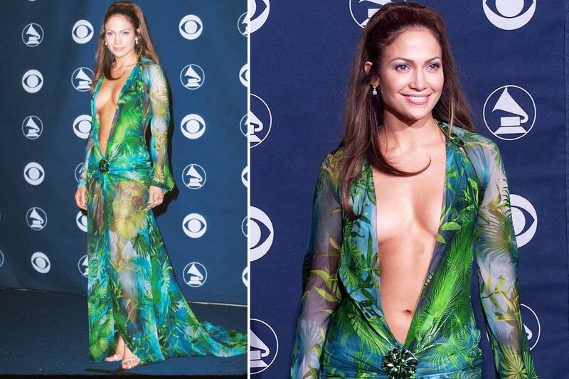 Uno de sus diminutos atuendos era parecido al vestido verde de Versace que usó Jennifer López en los premios Grammy del año 2000.