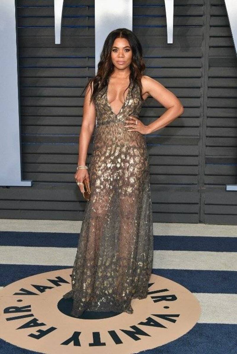 La presentadora de televisión Catt Sadler, de 43 años, y la actriz Regina Hall, de 47, ambos vestían vestidos con mucho escote en exhibición.
