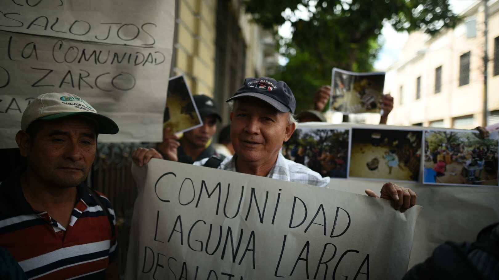 Constantino Velásquez y otras 15 personas protestaron frente al Congreso en representación de las más de 100 familias que fueron desalojadas de la comunidad Laguna Larga, en San Andrés, Petén.