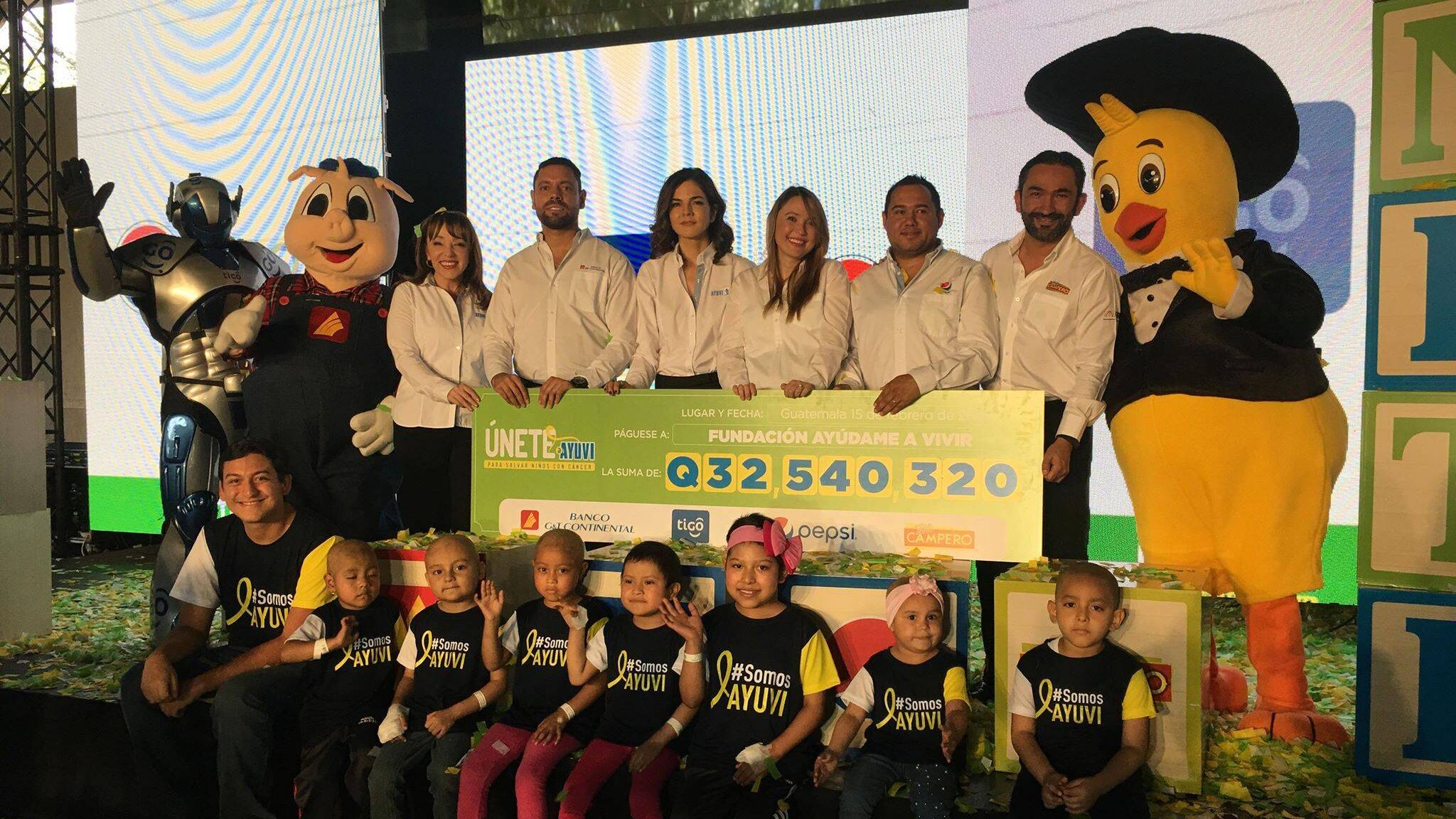 Como ya es tradición, cada año se revela el monto de los fondos que fueron recaudados en la Gran Rifa Únete, que nació con el objetivo de apoyar la labor de la Fundación Ayúdame a Vivir (Ayuvi). Los representantes de las cuatro empresas socias: Pollo Campero, Pepsi, Banco G&T Continental y Tigo se reunieron para hacer entrega oficial del donativo.