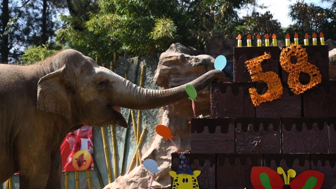 Este domingo 17 de febrero se festejó el cumpleaños 58 de la elefanta Trompita, quien estuvo acompañada de familias quienes le cantaron “Happy Birthday” y observaron como ella devoraba un pastel de frutas y verduras en el Zoológico La Aurora.