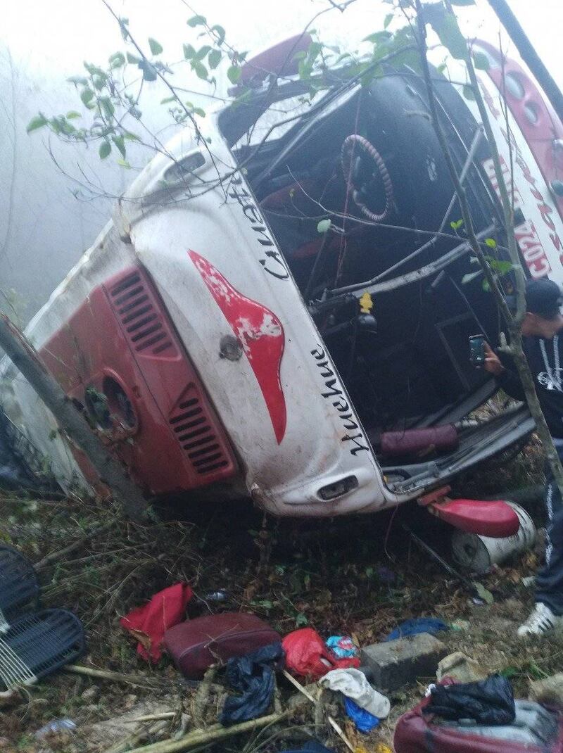 Un bus extraurbano de Transportes Velasquez cayó al fondo de un barranco en el kilómetro 154 de la ruta interamericana.