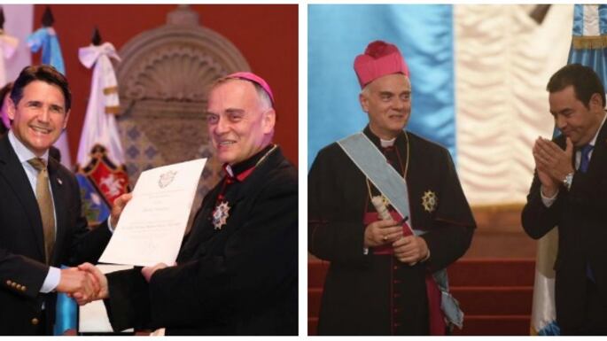 El presidente Jimmy Morales entregó este jueves un reconocimiento al nuncio apostólico, Nicolas Thevenin, por la labor realizada en Guatemala.
