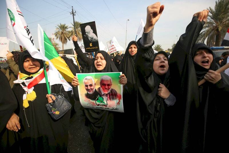 Miles de iraquíes cantaron "Muerte a Estados Unidos" y se unieron a la procesión fúnebre del comandante militar iraní Qasem Soleimani y Muhandis, ambos muertos en un ataque aéreo estadounidense.
