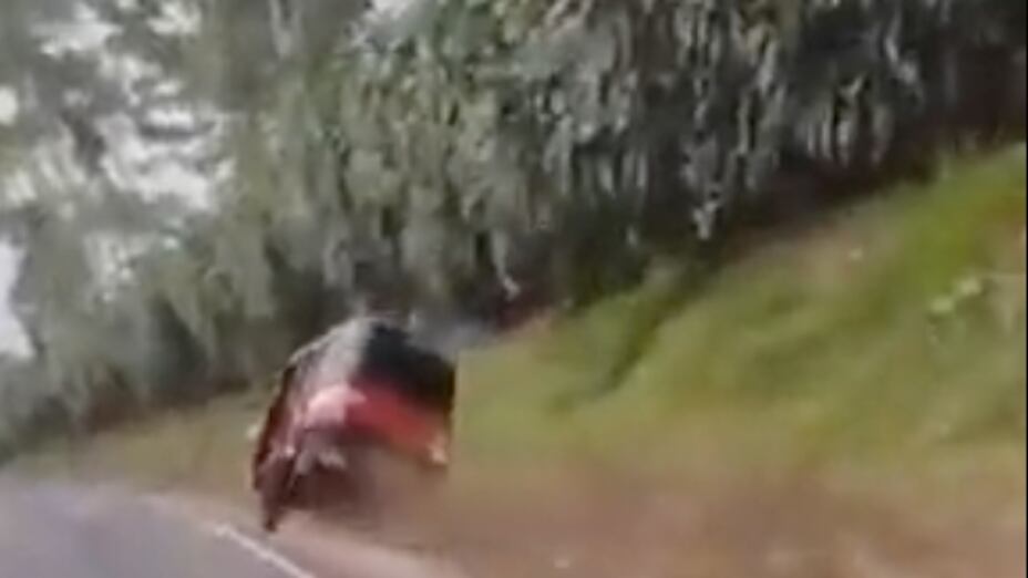En redes sociales fue publicado el video que fue captado por un motorista que se conducía atrás del mototaxi.