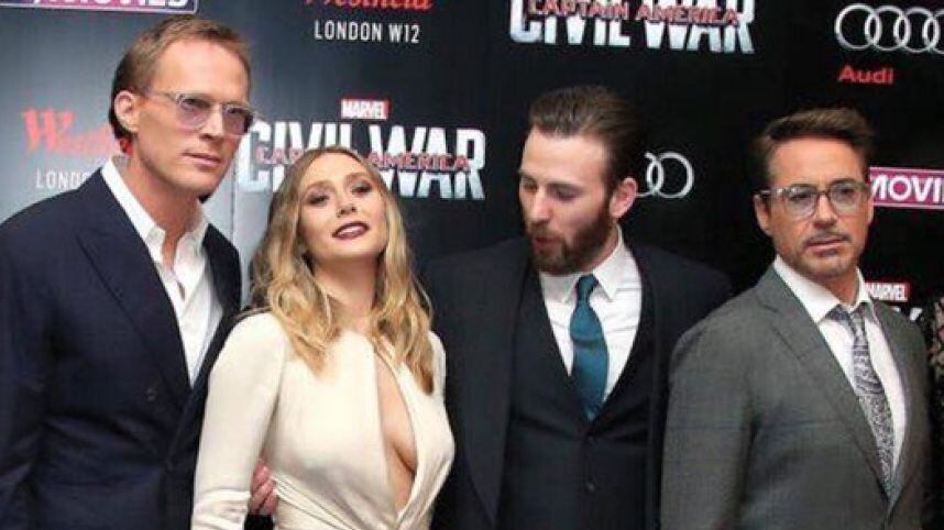 Durante la alfombra roja del estreno mundial de “Capitán América: Guerra Civil”, Elizabeth Olsen cautivó a todos con su escote, incluyendo a Chris Evans.