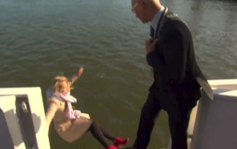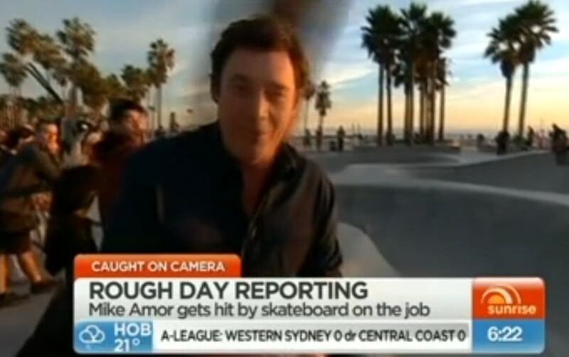 El momento en que una reportera holandesa cae al mar durante una entrevista al alcalde de la ciudad de Kampen. Foto: Vía Youtube Periodista mexicano insulta y se refiere despectivamente a sus colegas de otra televisora sin saber que estaba al aire. Los memes no faltaron. Foto: Vía Youtube.com Reportero autraliano recibe fuerte golpe en la cabeza con una patineta. Foto: Vía Sunrise La parte superior del bikini de Bernardita Middleton cayó después de lanzarse al mar, durante su transmisión. Foto: Vía TVN Conductora sufrió accidente y quedan al descubierto sus senos. Foto: Vía Toutube.com Una reportera regaló su ropa interior a agrupación de música de banda en México. Foto: Vía Youtube.com Eitam Lachover estaba realizando un reportaje sobre una compañía israelí que se dedica a producir equipo de protección Foto: Vía Youtube Cuando demostraba cómo se frustra una puñalada, el cuchillo penetró la protección y logró herir la parte superior de la espalda del reportero. Foto: YouTube