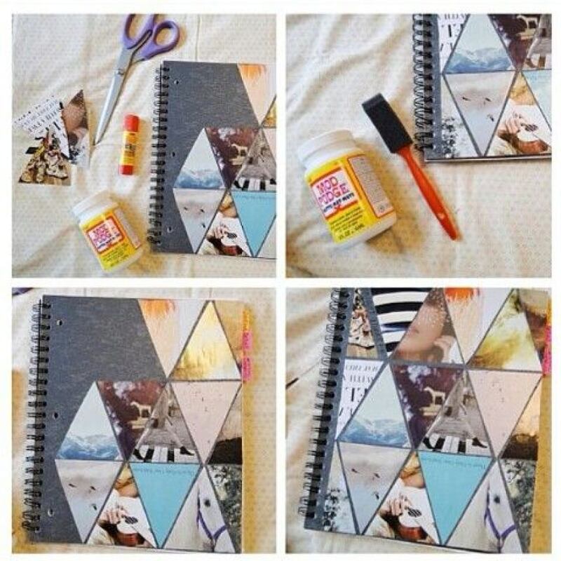 Tela, spry, cuaderno y pegamento blanco. Foto: Pinterest.com Fieltro y creatividad Foto: Pinterest.com Cellos, pegamento blanco, un cuaderno blanco y pintura acrilica negra Foto: Pinterest.com Diferentes tipos de papel de china Foto: Pinterest.com Recicla. Forra tus cuadernos con una playera vieja Foto: Pinterest.com ¿No te queda el pantalón que te gustaba? Usa la tela para forrar un cuaderno Foto: Pinterest.com Haz un collage de rombos con tus mejores fotografías Foto: Pinterest.com Utiliza tape con diseños y dale un estilo chic a tus cuadernos Foto: Pinterest.com Con marcadores y papel craft puedes decorar tus cuadernos Foto: Pinterest.com Usa pintura negra de pizarra y dale un look diferente a tus libros Foto: Pinterest.com Foto: Pinterest.com