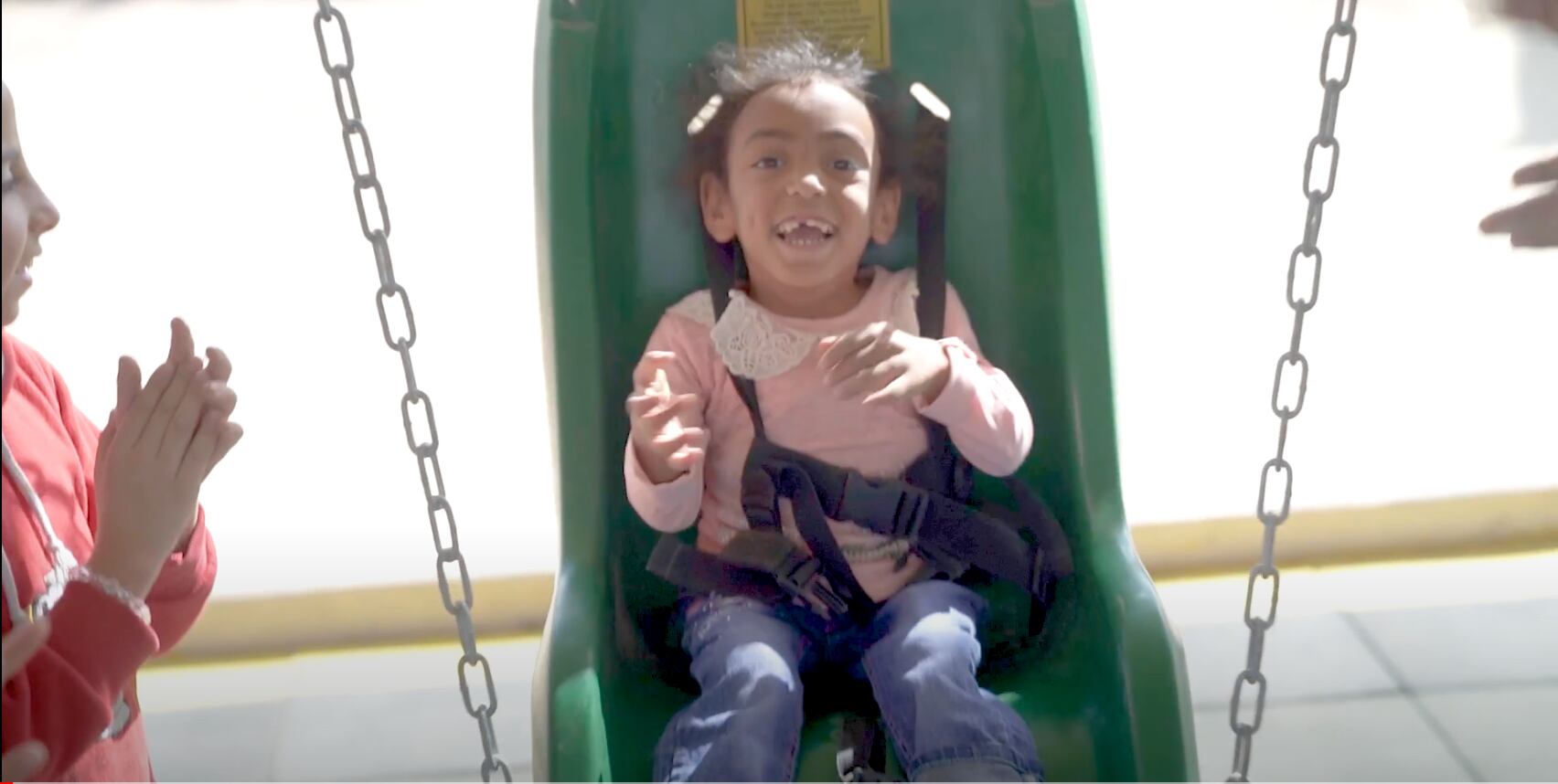 El espacio, uno de los primeros de este tipo, ha sido diseñado y equipado por UNICEF para que los niños con y sin discapacidades puedan jugar juntos.
