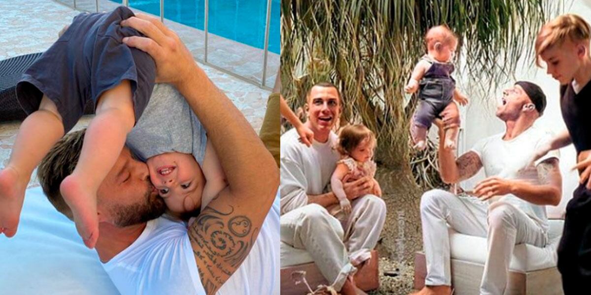 La familia en pleno lo celebró con un día de playa y es en esas imágenes donde se nota el increíble parecido con Ricky, heredaron lo guapo de su padre.