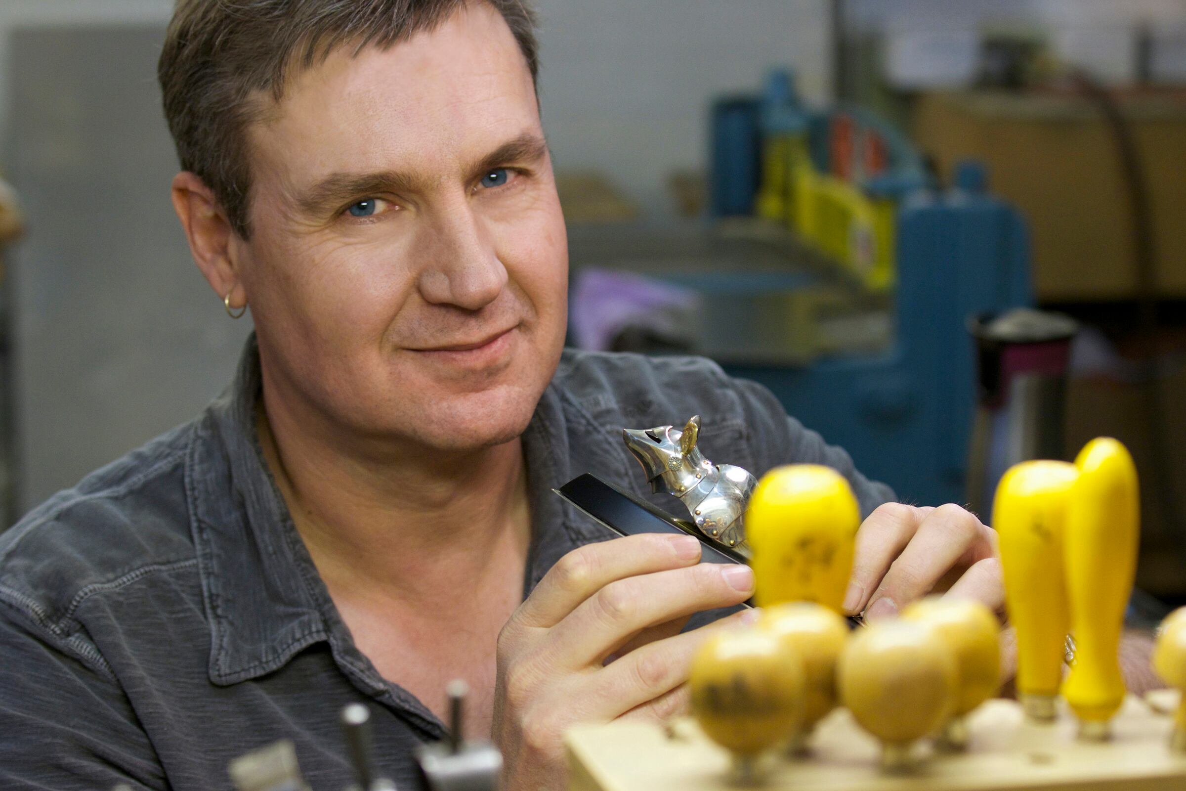 - Después de trabajar en mi oficio durante los últimos 36 años, algunas cosas parecen fáciles... ahora. Lo más difícil es decidir qué voy a hacer a continuación. Afortunadamente, a menudo hago algo a petición de un mecenas. Muchos de mis proyectos son diseños personalizados en honor al gato de alguien o un ratón que representa un periodo histórico que alguien desea tener.