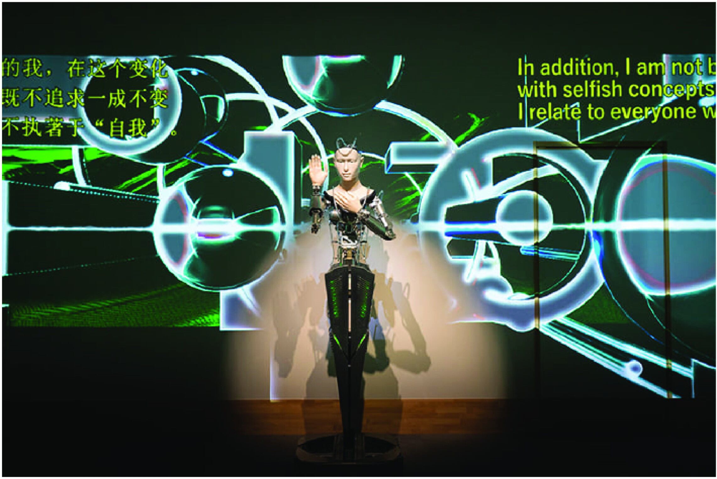 En el primer experimento, probaron el robot humanoide Mindar en el templo budista Kodai-Ji de Kioto (Japón). Tiene un rostro de silicona de aspecto humano con labios móviles y ojos parpadeantes sobre un cuerpo de metal, y pronuncia sermones de 25 minutos sobre los principios budistas en el Sutra del Corazón con sonido envolvente y proyecciones multimedia.
