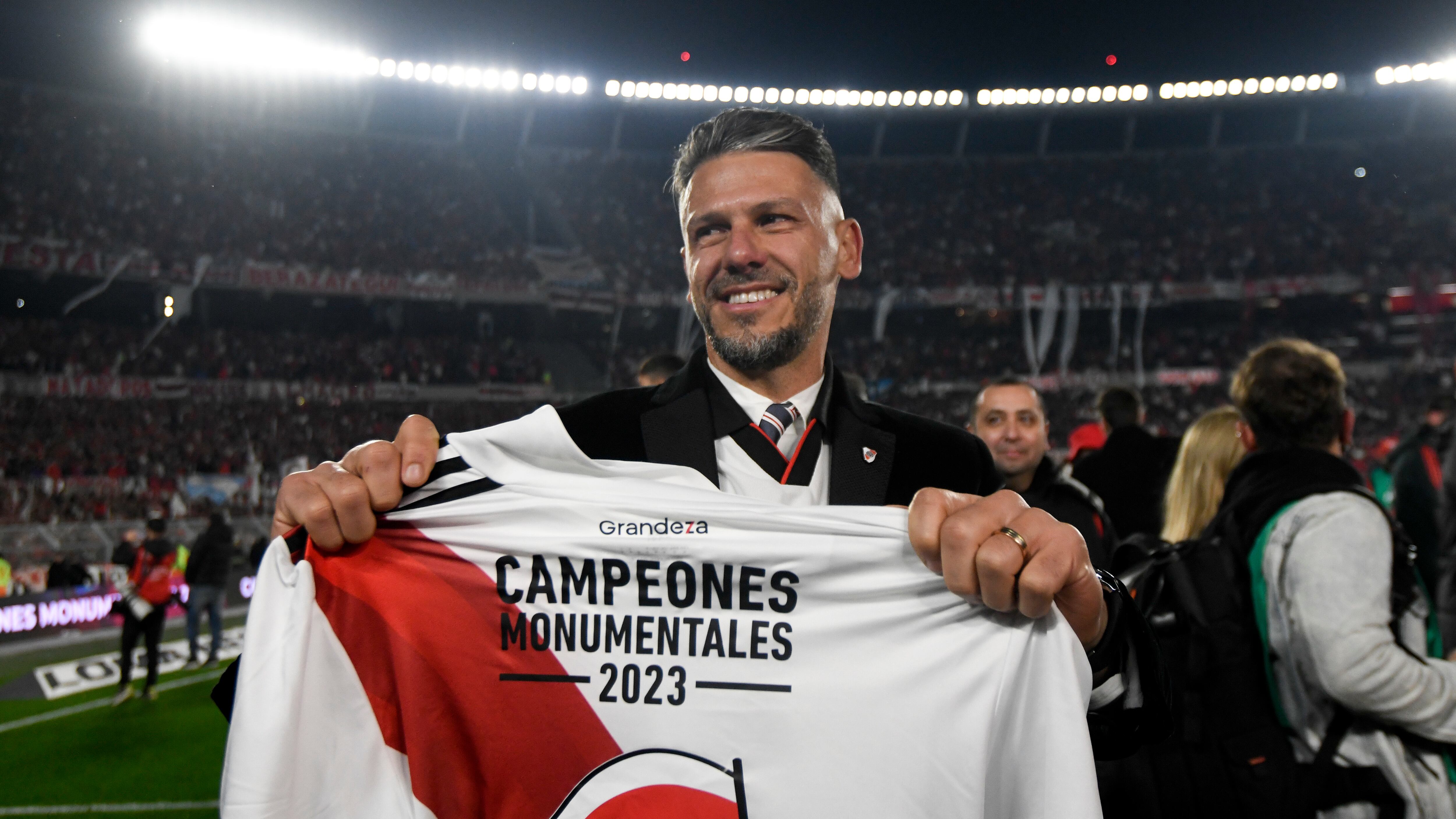 Martín Demichelis, entrenador de River Plate, festeja la conquista del título de la liga argentina con un triunfo ante Estudiantes, el sábad 15 de julio de 2023 (AP Foto/Gustavo Garello) AP (Gustavo Garello/AP)